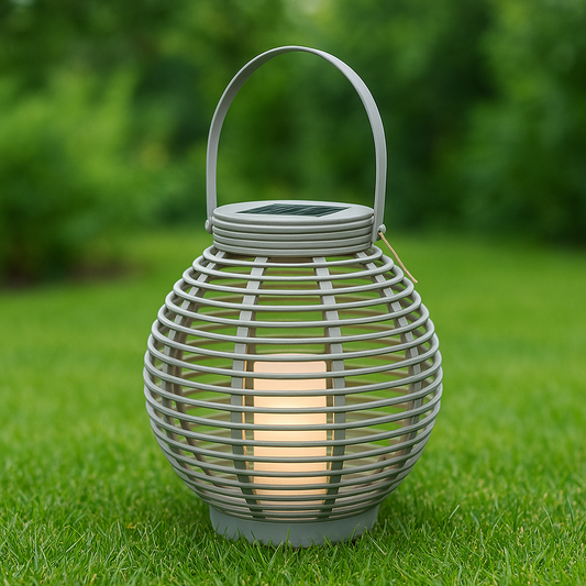 Garten Laterne Rattan-Optik 43,5 x Ø 38 cm Hellgrau Solarbetrieben Dekolicht