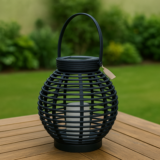 Garten Laterne Rattan-Optik 43,5 x Ø 38 cm Anthrazit Solarbetrieben Dekolicht